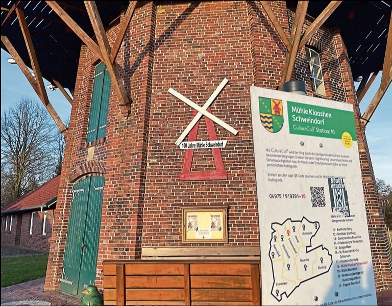 SCHWEINDORF. (IF) Wo einst ein Schandfleck stand, soll bald ein grünes Herzstück für Schweindorf entstehen: der zukünftige „grüne Dorfplatz“. Am Fuße des Wahrzeichens, der Mühle Klaashen, „soll ein Treffpunkt für alle Generationen entstehen“, hebt Schweindorfs ehemalige Bürgermeisterin Birgit Siebels-Janßen hervor. „Das wird ein Blickfang“, sagt der neue Bürgermeister Carsten Schuster. Noch ist Grünland auf der Fläche gegenüber der Mühle, doch das soll sich bald ändern. In diesem Jahr ist der Baubeginn geplant.